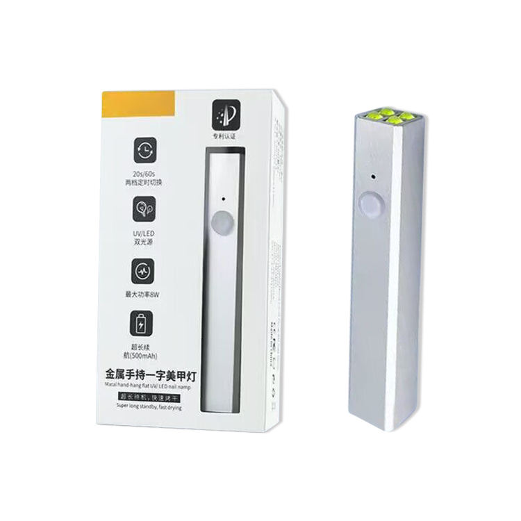 1)8W վերալիցքավորվող անլար մեկ գծի լամպ Ապրանքը ունի 4 ուլտրամանուշակագույն/LED ներկրված մեծ չիպային լամպեր, 1 լավագույն 5 արդյունավետությունը 8 վայրկյան եղունգների գունավոր լաքը չորացնելու համար, 12 վայրկյան եղունգների լաքի կնքման շերտը չորացնելու համար: Լամպի ուլունքների ալիքի երկարությունը (365 + 405 նմ), բարձր հզորությամբ թխելու սոսինձ առանց փակուղիների. բարձր հզորություն: