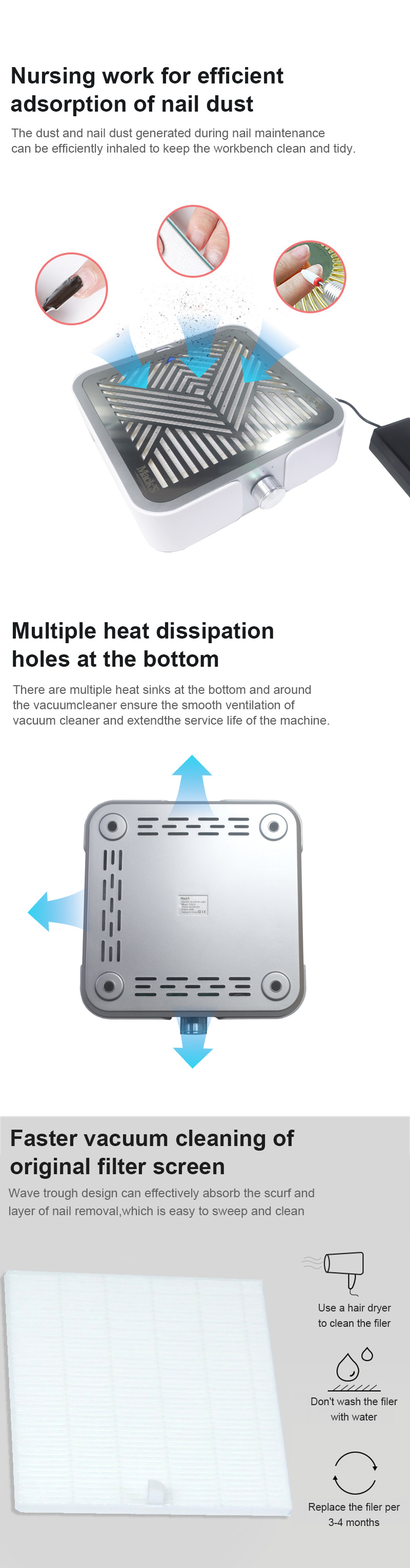 Ապրանքներ ուժեղ adsorption եղունգների բեկորներ չի արտահոսում փոշին, պահել countertop մաքուր եւ կոկիկ, արագ փոշեկուլով չի արտահոսում փոշու բարձր հզորությունը ավելի արդյունավետ.