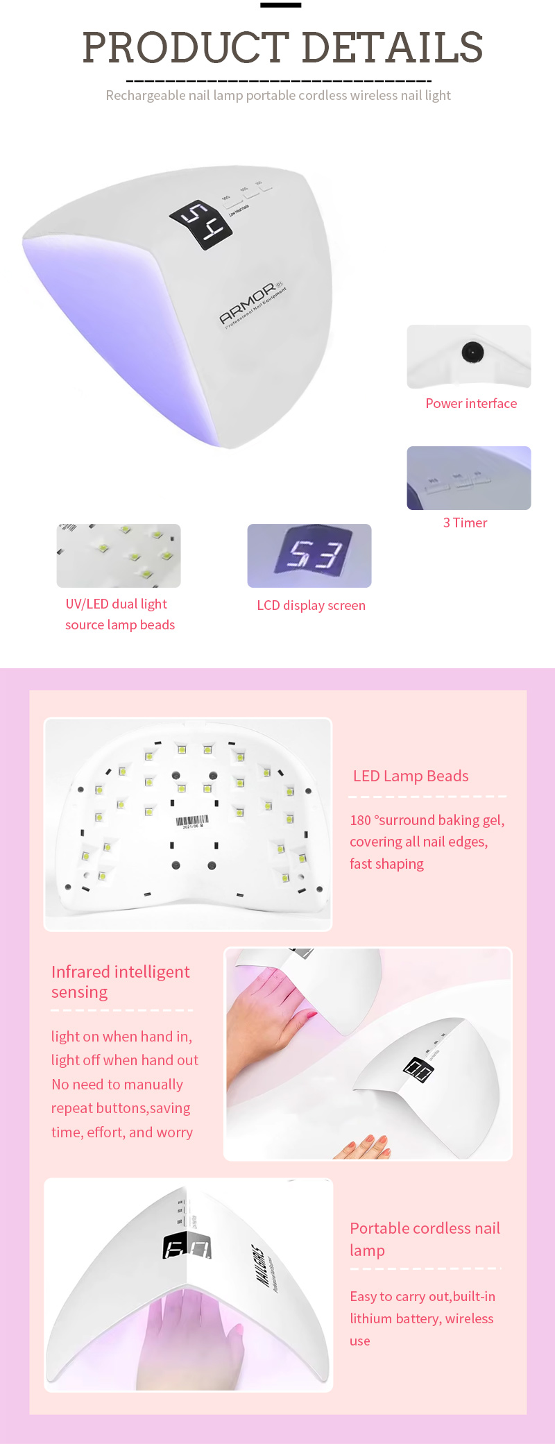 Եղունգների չորացման լամպ Սպիտակ բուժիչ արագ 80 վտ շարժական
