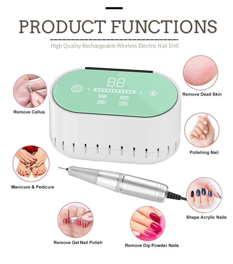 Վերալիցքավորվող եղունգների գայլիկոնի հավաքածու եղունգների գայլիկոն մատների վրա 35w 35000rpm