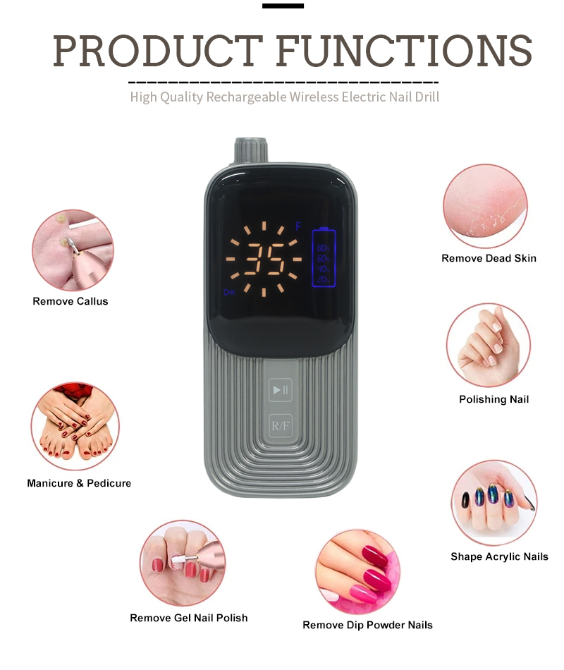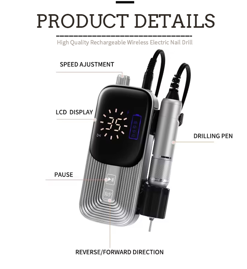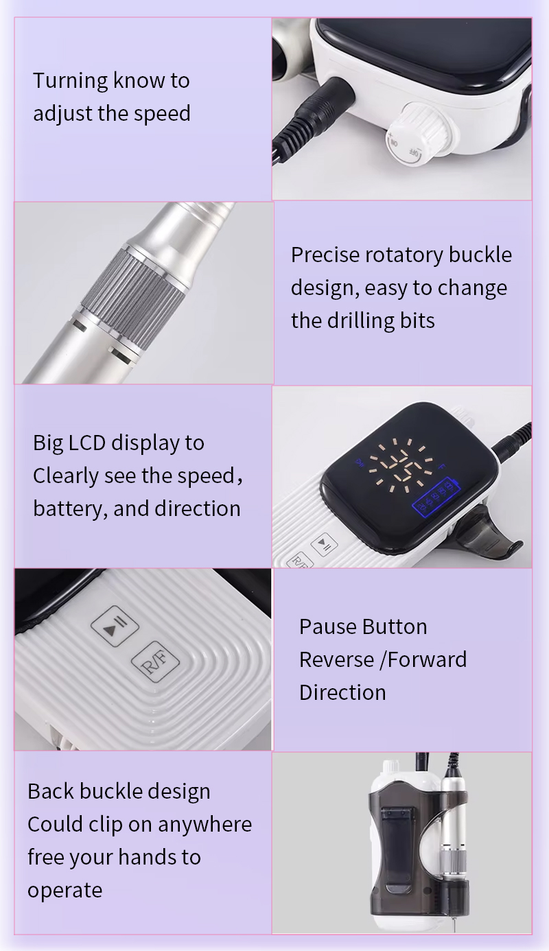 Դյուրակիր եղունգների գայլիկոնի հավաքածու էլեկտրական հզոր շարժիչով 65w 35000rpm