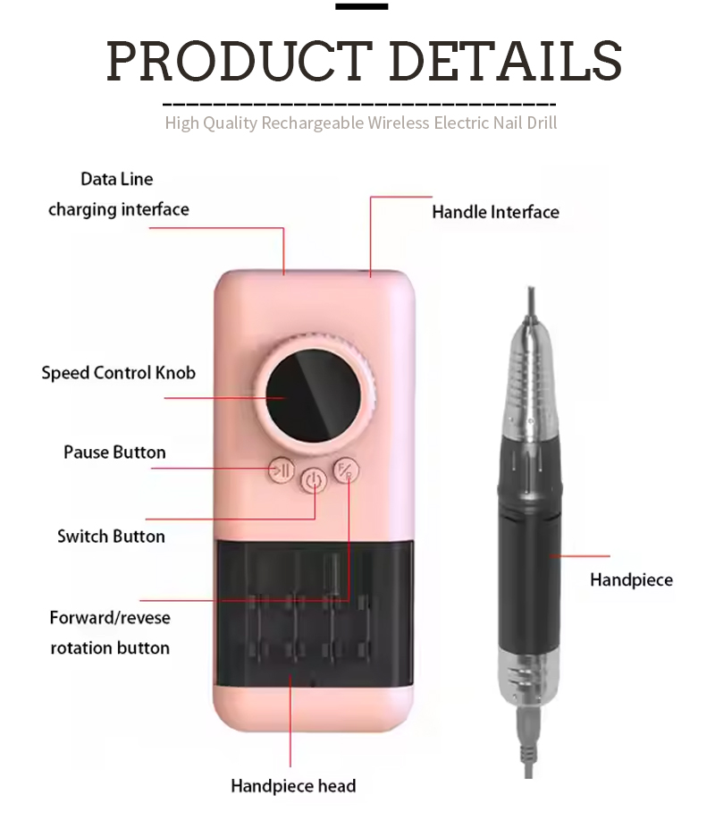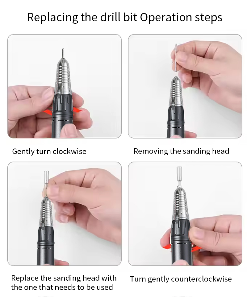 Դյուրակիր եղունգների գայլիկոնի հավաքածու էլեկտրական հզոր շարժիչով 65w 35000rpm