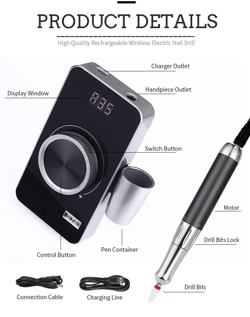 | Շերտավորող 35,000 RPM էլեկտրական եղունգների գայլիկոնի մանրամասներ |