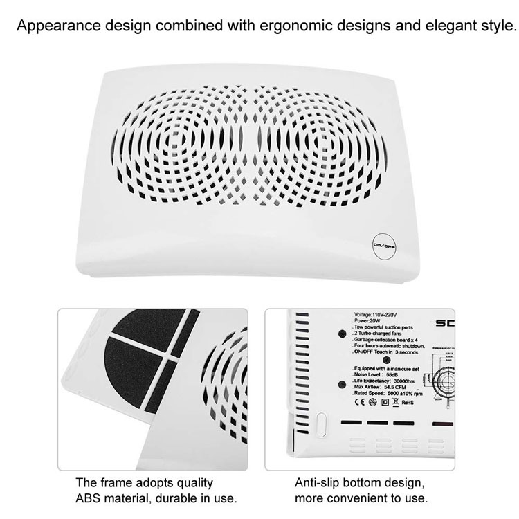 Վերալիցքավորվող եղունգների փոշի հավաքող օդափոխիչ ֆիլտրով 40 վտ