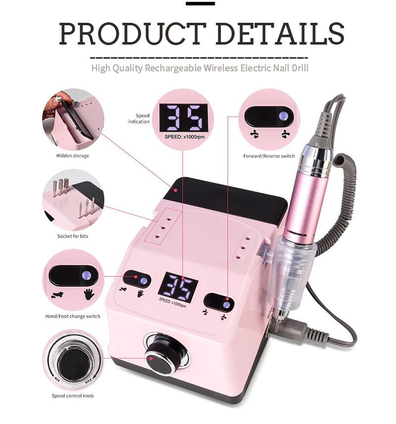 Դյուրակիր եղունգների գայլիկոնի հավաքածու էլեկտրական հզոր շարժիչով 65w 35000rpm