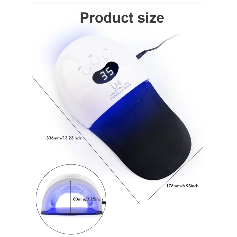 Եղունգների չորացման այս բարձրորակ LED լամպը ապահովում է սոսինձի հավասարաչափ չորացում՝ առանց կծկվելու: Նրա կրկնակի լույսի աղբյուրները ապահովում են նուրբ տաքացում՝ կանխելու ձեռքերի գունաթափումը և աչքերի լարվածությունը, որը հարմար է ինչպես ձեռքերի, այնպես էլ ոտքերի համար՝ ապահովելով զգալի արագ չորացման արդյունքներ: