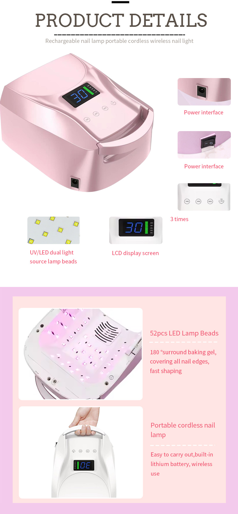 1, երկակի լույսի աղբյուրի LED ուլունքներ, կարող են թխել եղունգների մի շարք սոսինձ եւ ֆունկցիոնալ սոսինձ: