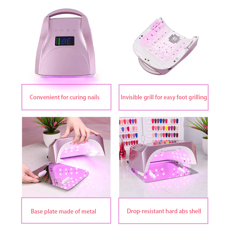 Վերալիցքավորելի եղունգների լամպի մասնագիտական տարբերակը 96W Ապրանքի տեսքը ունի Groove Design, որի բռունցքը կարող է օգտագործվել որպես դյուրակիր բռնակի դեր: Այն նաեւ խուսափում է բռնակի անբարենպաստությունից, որը հեշտությամբ կոտրվում է եւ քաշվում: