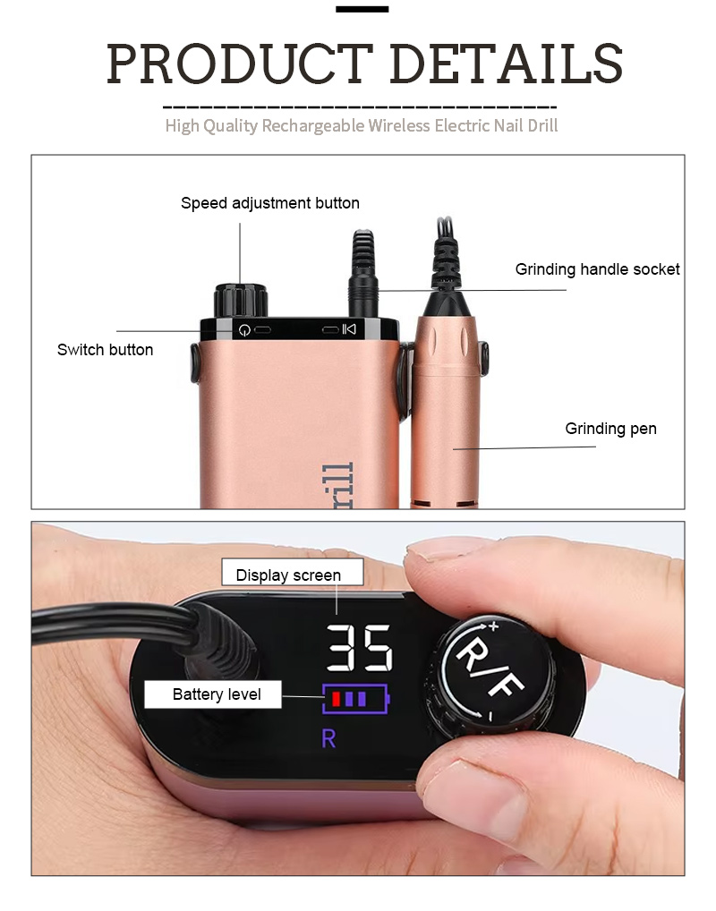 Դյուրակիր եղունգների գայլիկոնի հավաքածու էլեկտրական հզոր շարժիչով 65w 35000rpm