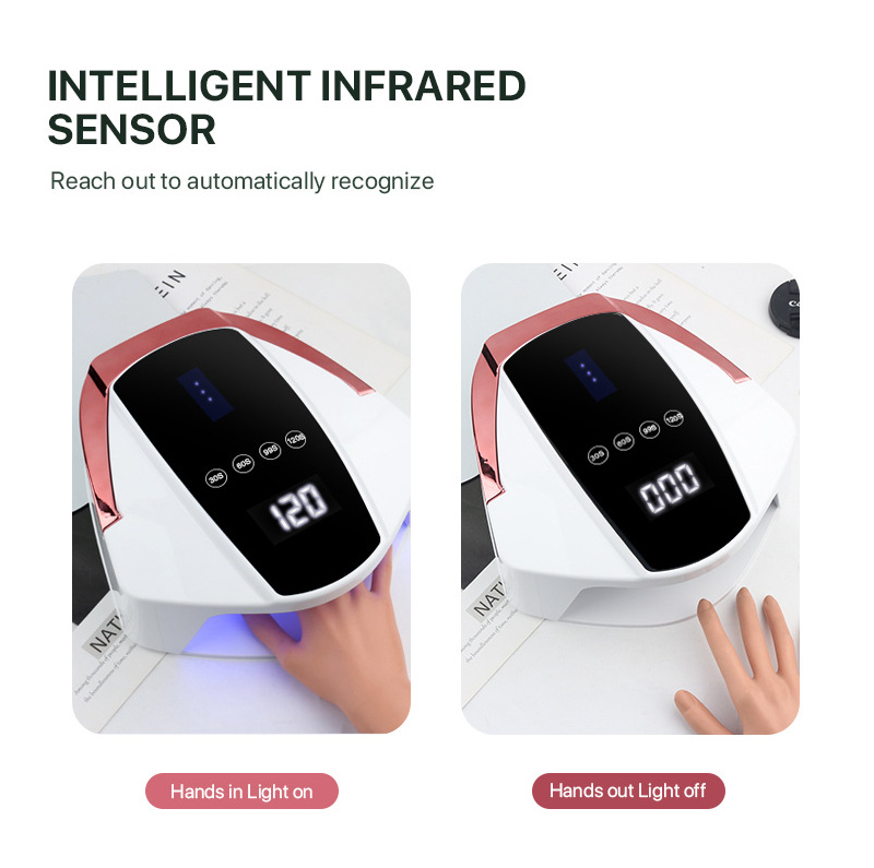 Ապրանքը ապահովում է սոսինձի հավասարաչափ չորացում՝ առանց կծկվելու: Նրա կրկնակի լույսի աղբյուրները ապահովում են նուրբ տաքացում՝ կանխելու ձեռքերի գունաթափումը և աչքերի լարվածությունը, որը հարմար է ինչպես ձեռքերի, այնպես էլ ոտքերի համար՝ ապահովելով զգալի արագ չորացման արդյունքներ: