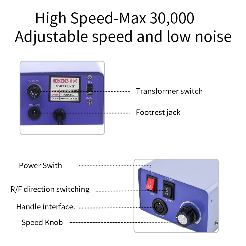 1, կարգավորելի արագություն, հզոր շարժիչ, բարձր արագությամբ հղկում, անսահման գլխիկի իրական ժամանակի արագության կարգավորում:
