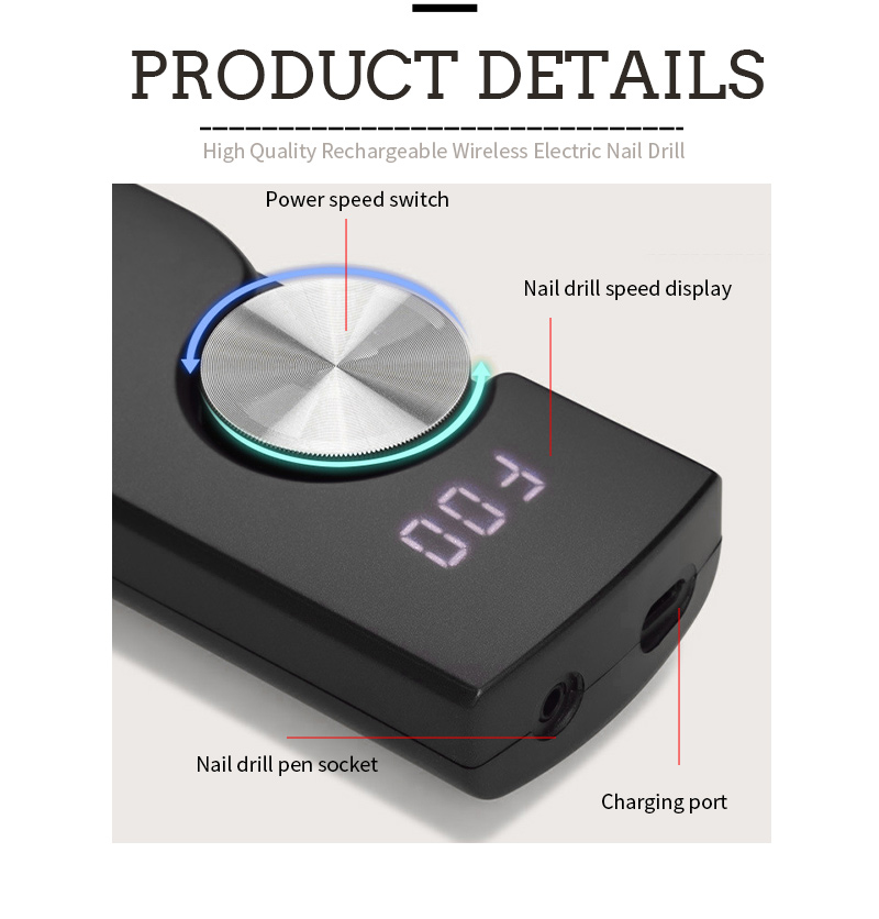 Վերալիցքավորվող անլար եղունգների հորատիչ մեքենա Հզոր 45w 40000rpm