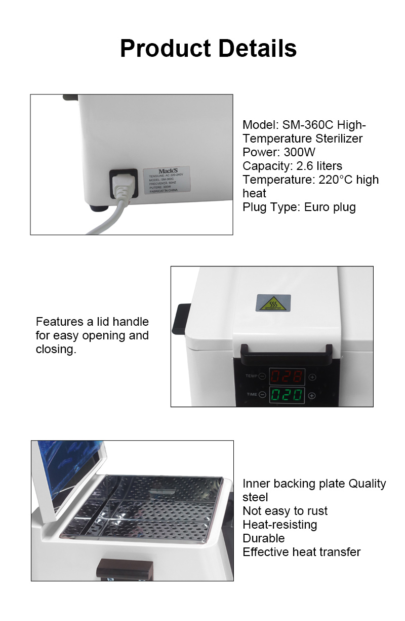 Այս ստերիլիզատորը հիմնականում ջերմություն է առաջացնում տաքացնող օղակի միջոցով՝ օգտագործելով բարձր ջերմաստիճան ախտահանման համար:
