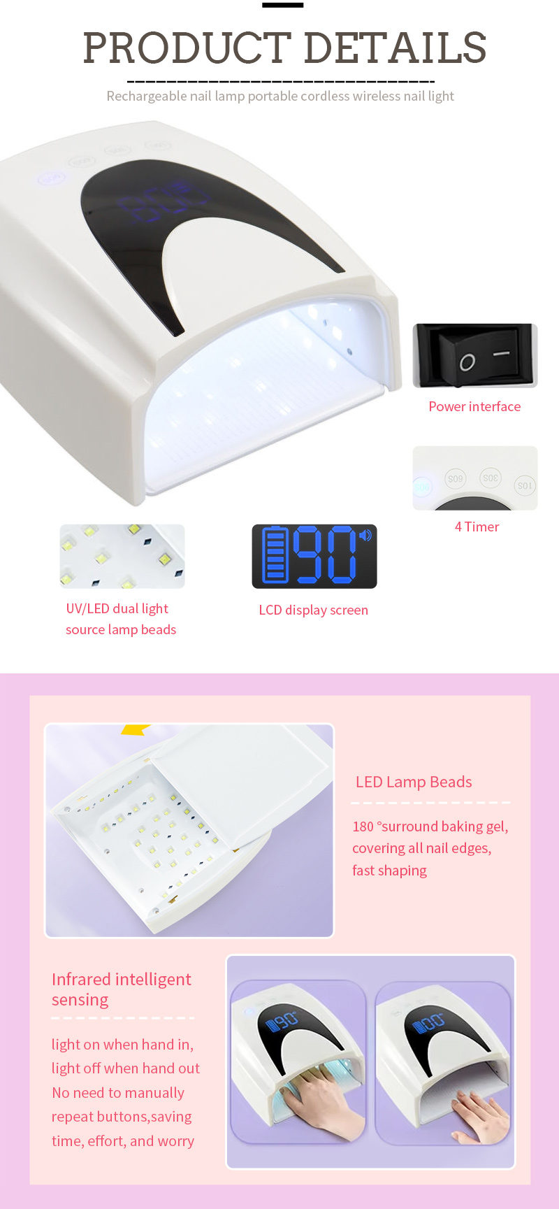 Եղունգների չորացման լամպ Սպիտակ բուժիչ արագ 80 վտ շարժական