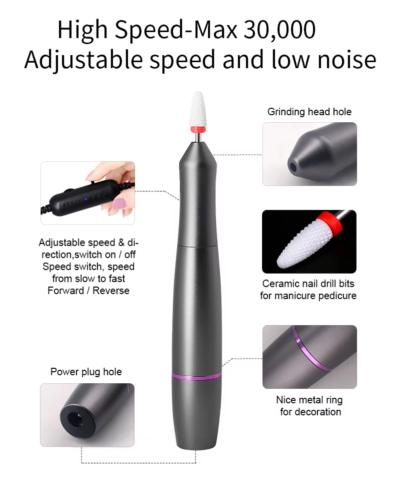 Դյուրակիր եղունգների գայլիկոնի հավաքածու էլեկտրական հզոր շարժիչով 65w 35000rpm