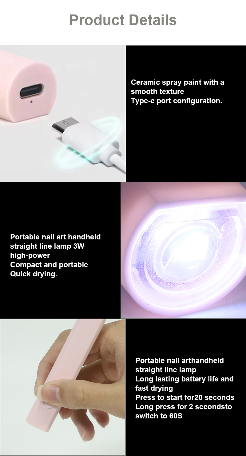 Ապրանքը ապահովում է սոսինձի հավասարաչափ չորացում՝ առանց կծկվելու: Նրա կրկնակի լույսի աղբյուրները ապահովում են նուրբ տաքացում՝ կանխելու ձեռքերի գունաթափումը և աչքերի լարվածությունը, որը հարմար է ինչպես ձեռքերի, այնպես էլ ոտքերի համար՝ ապահովելով զգալի արագ չորացման արդյունքներ: