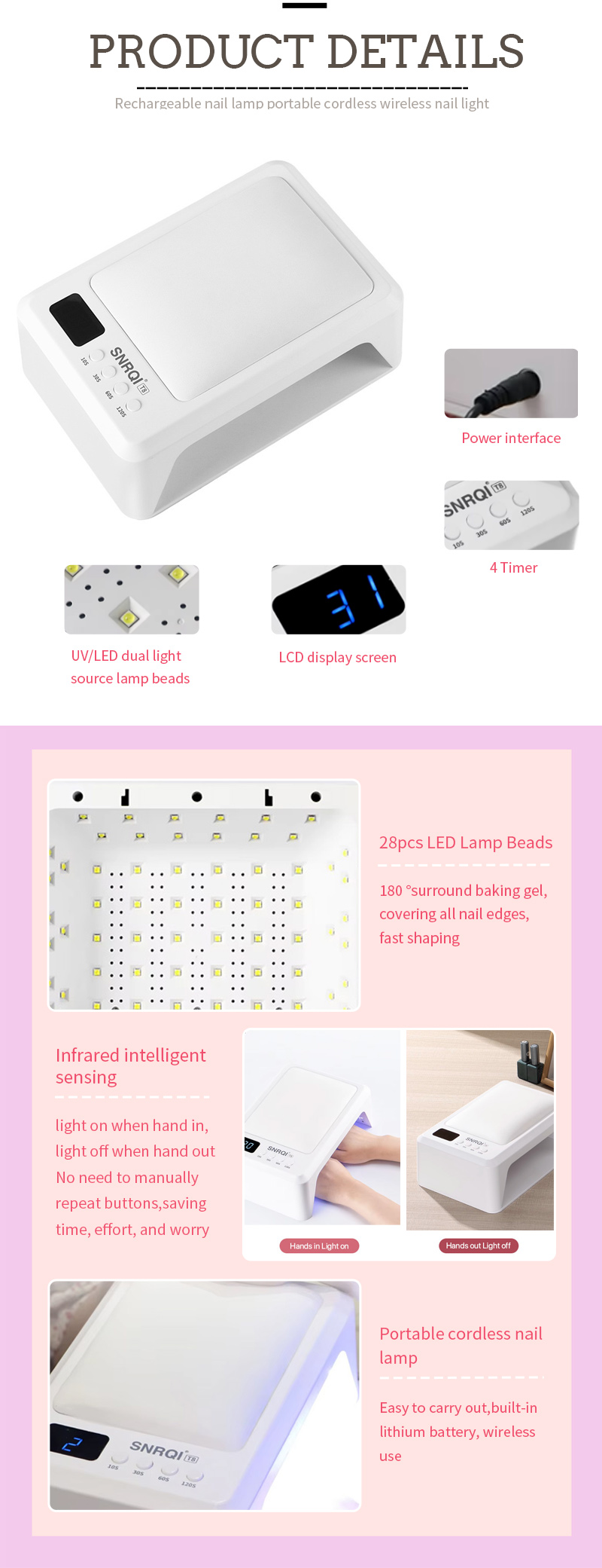 Լիցքավորվող եղունգների լեհական լամպի պրոֆեսիոնալ տարբերակը 128W Ապրանքի տեսքը ունի Groove Design, Groove- ի բռնակը կարող է օգտագործվել որպես դյուրակիր բռնակի դեր, այն ավելի հարմար դարձնելով: Այն նաեւ խուսափում է բռնակի անբարենպաստությունից, որը հեշտությամբ կոտրվում է եւ քաշվում: