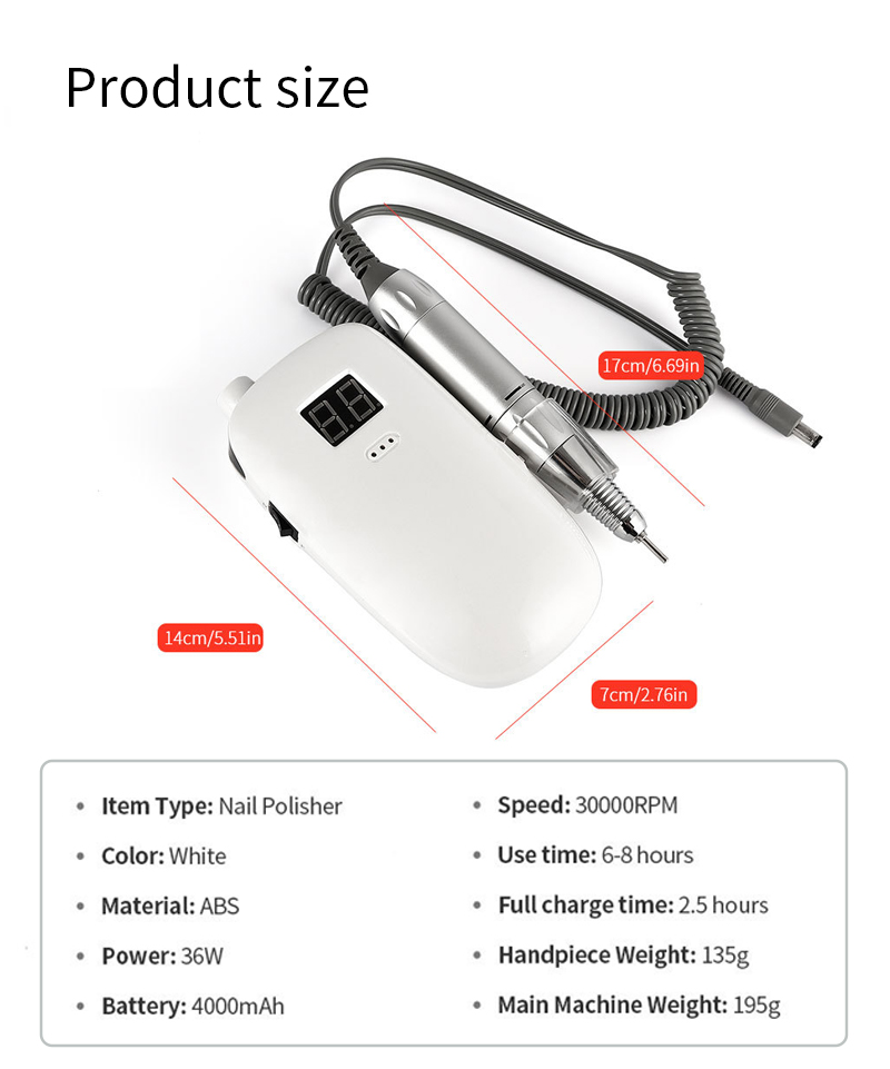 Դյուրակիր եղունգների գայլիկոնի հավաքածու էլեկտրական հզոր շարժիչով 65w 35000rpm