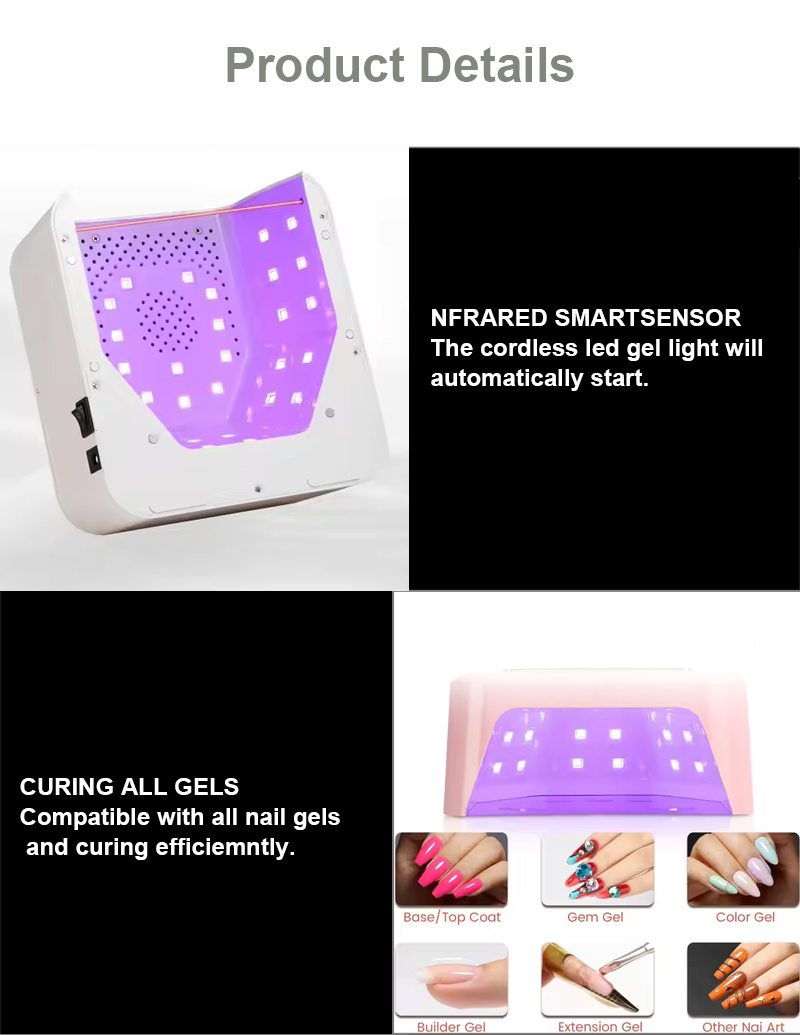Նոր ոճով կոր գլուխ բռնելով եղունգների ճարմանդներՈրպես պրոֆեսիոնալ արտադրող, մենք ուրախ ենք առաջարկել հարմարեցված Նոր գել եղունգների լաքի արագ չորացման լամպ: Մենք տրամադրում ենք պրեմիում վաճառքից հետո ծառայություն և ապահովում ենք ժամանակին առաքում: Այս արտադրանքն ունի խելացի կարմիր լույսի տեխնոլոգիա, որը նուրբ է ձեռքերի վրա, 5 վայրկյան արագ չորանում, մեծ սենսորային էկրան և աջակցում է ժամանակաչափի գործառույթներին: Կոճակի ինտուիտիվ կառավարմամբ և շահագործման համապարփակ ուղեցույցով նույնիսկ լրիվ սկսնակները կարող են այն օգտագործել առանց ջանքերի: