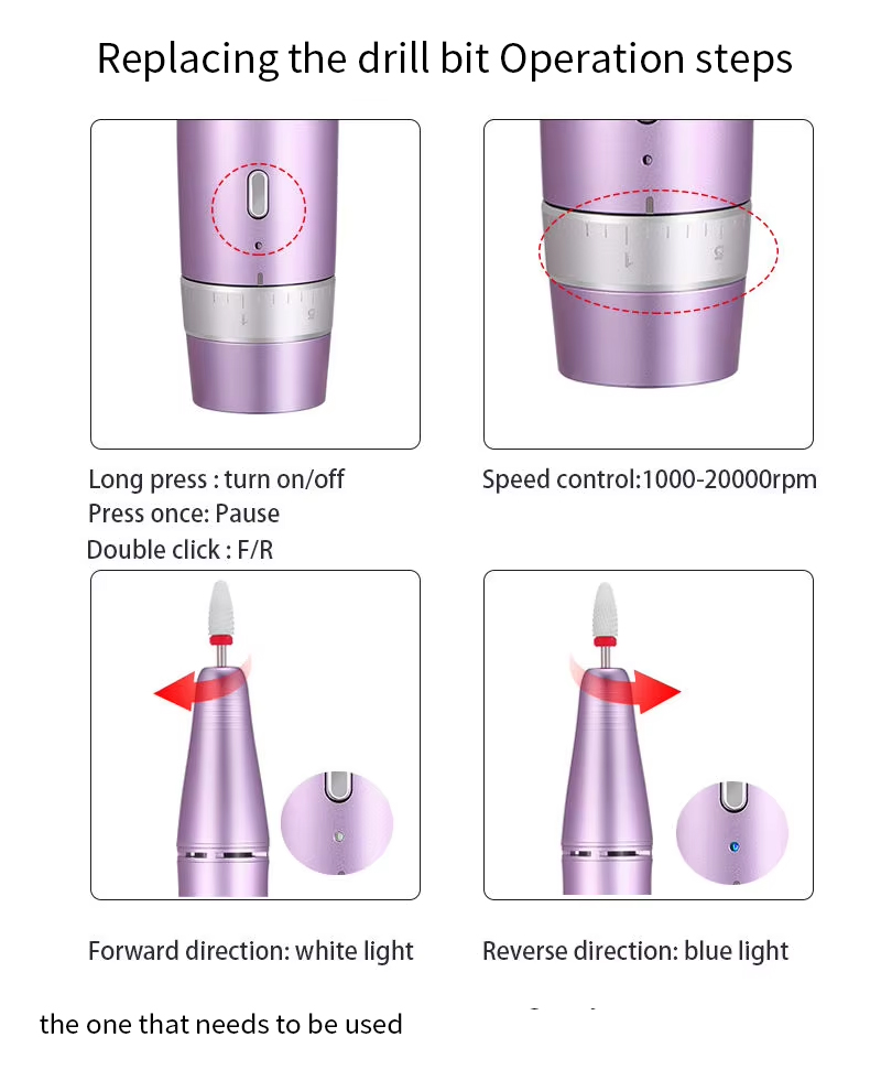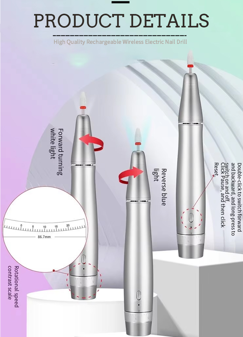 Դյուրակիր եղունգների գայլիկոնի հավաքածու էլեկտրական հզոր շարժիչով 65w 35000rpm