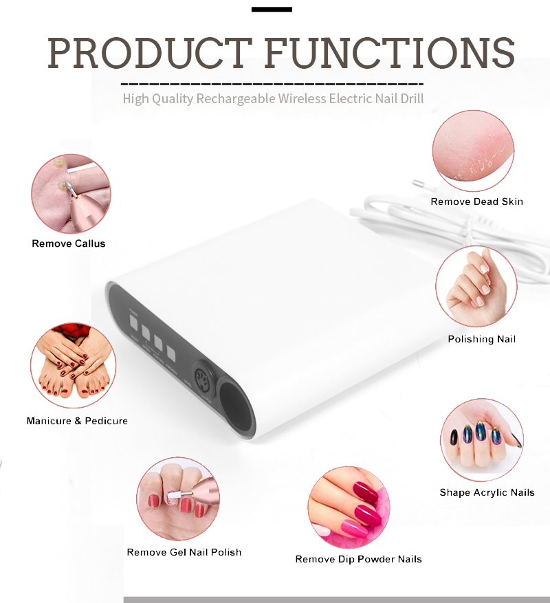 Դյուրակիր եղունգների գայլիկոնի հավաքածու էլեկտրական հզոր շարժիչով 65w 35000rpm