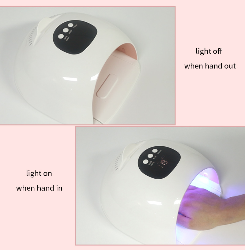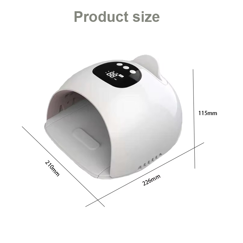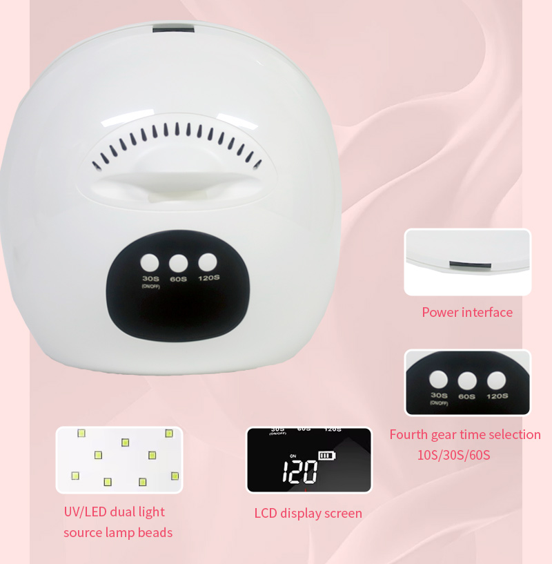 Ապրանքը ապահովում է սոսինձի հավասարաչափ չորացում՝ առանց կծկվելու: Նրա կրկնակի լույսի աղբյուրները ապահովում են նուրբ տաքացում՝ կանխելու ձեռքերի գունաթափումը և աչքերի լարվածությունը, որը հարմար է ինչպես ձեռքերի, այնպես էլ ոտքերի համար՝ ապահովելով զգալի արագ չորացման արդյունքներ: