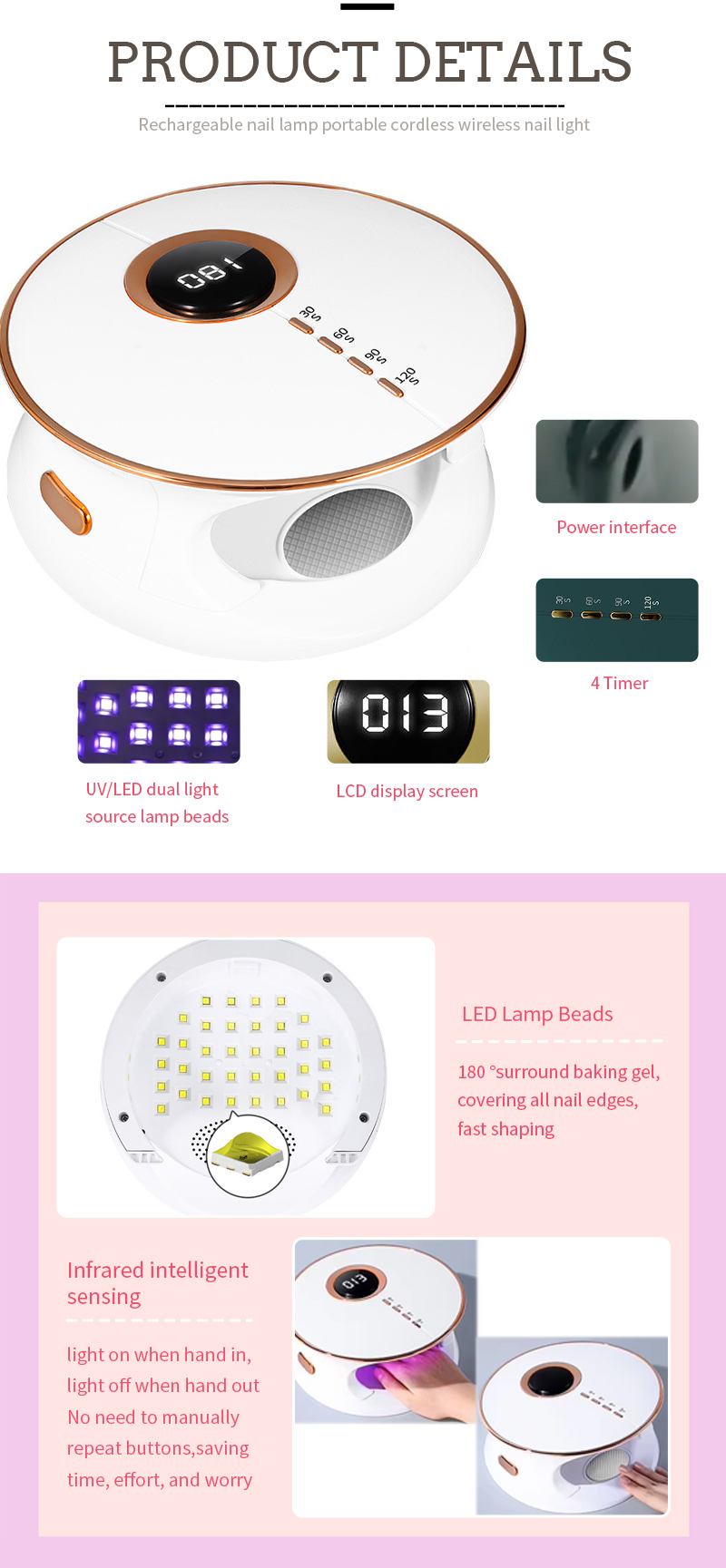 • Բարձր էներգիայի հզոր LED լամպ, 10-ականների արագ բուժման գել