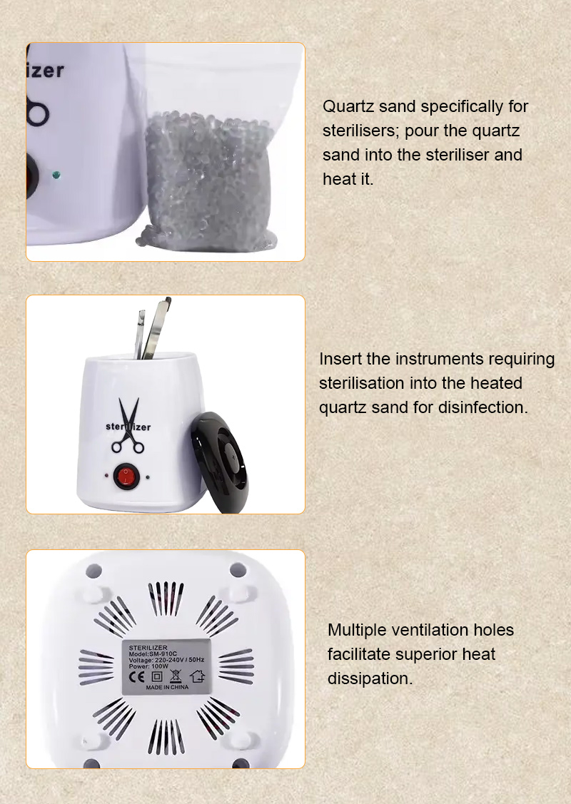 Այս ստերիլիզատորը հիմնականում ջերմություն է առաջացնում տաքացնող օղակի միջոցով՝ օգտագործելով բարձր ջերմաստիճան ախտահանման համար: