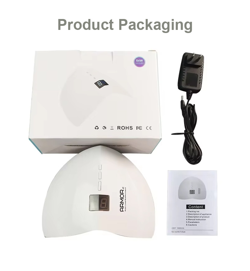 Ապրանքը ապահովում է սոսինձի հավասարաչափ չորացում՝ առանց կծկվելու: Նրա կրկնակի լույսի աղբյուրները ապահովում են նուրբ տաքացում՝ կանխելու ձեռքերի գունաթափումը և աչքերի լարվածությունը, որը հարմար է ինչպես ձեռքերի, այնպես էլ ոտքերի համար՝ ապահովելով զգալի արագ չորացման արդյունքներ: