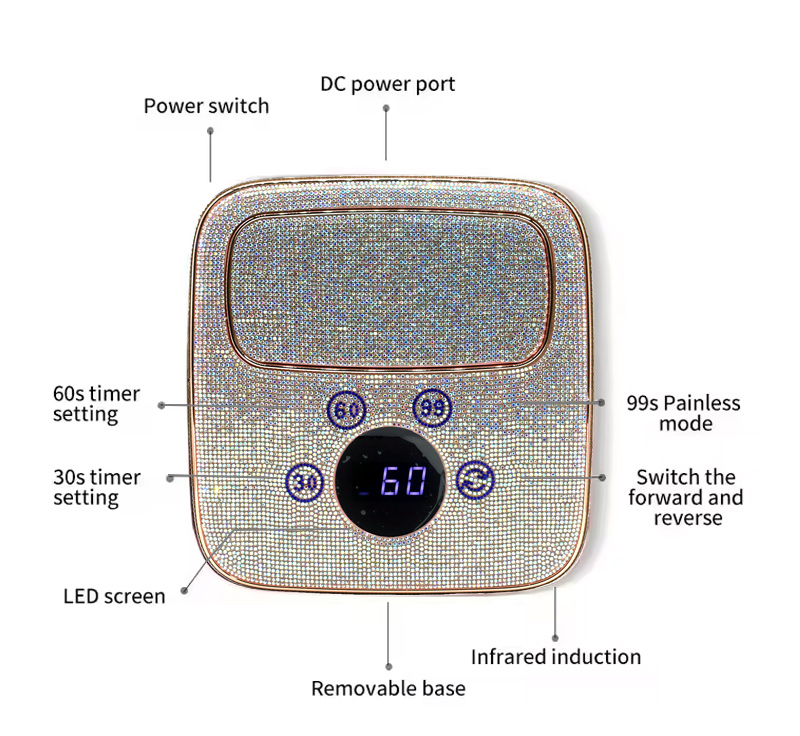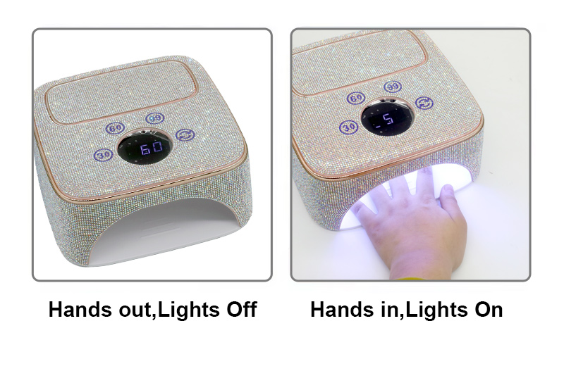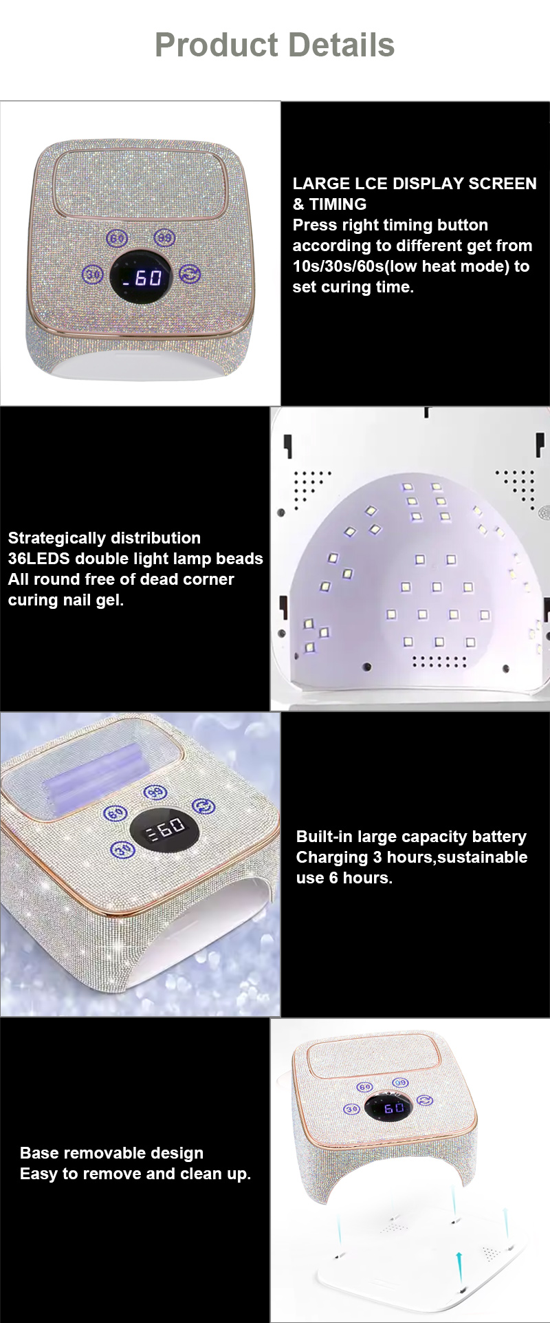 Ապրանքը ապահովում է սոսինձի հավասարաչափ չորացում՝ առանց կծկվելու: Նրա կրկնակի լույսի աղբյուրները ապահովում են նուրբ տաքացում՝ կանխելու ձեռքերի գունաթափումը և աչքերի լարվածությունը, որը հարմար է ինչպես ձեռքերի, այնպես էլ ոտքերի համար՝ ապահովելով զգալի արագ չորացման արդյունքներ: