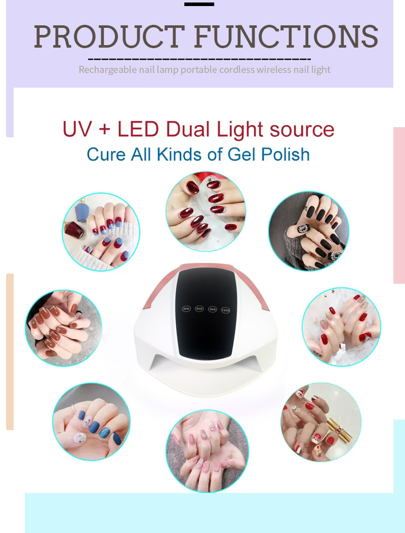 2, վերալիցքավորվող եղունգների թխում լույսի պրոֆեսիոնալ տարբերակը 90w հագեցած է ոչ սայթաքող բազայով: