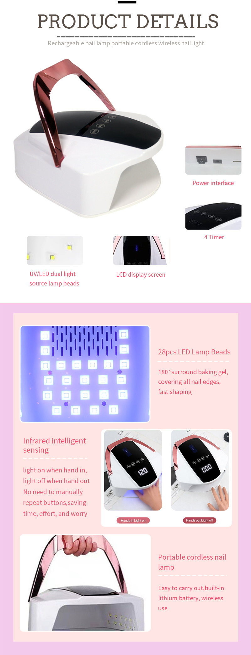 Ապրանքի մանրամասները եղունգների արվեստի արագ չոր LED Հատուկ բուժող սոսինձ սոսինձի լամպ