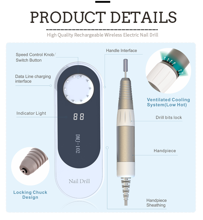 DMJ-102 գերարագ 35,000 RPM էլեկտրական եղունգների ֆայլ լեհական հեռացման համար. Հատկություններ եւ ծրագրեր