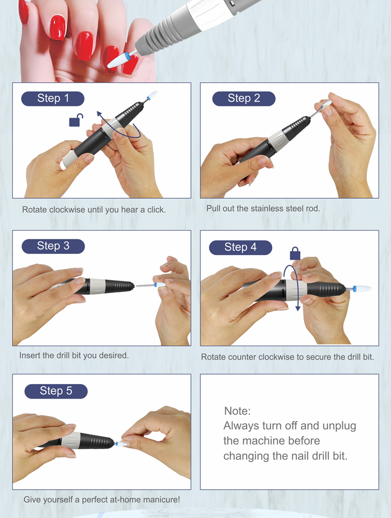 Դյուրակիր եղունգների գայլիկոնի հավաքածու էլեկտրական հզոր շարժիչով 65w 35000rpm