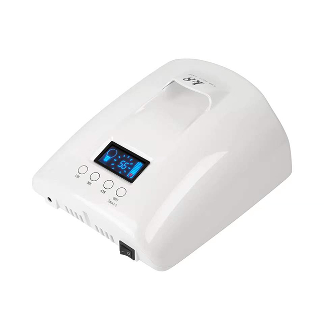 2)Վերալիցքավորվող եղունգների լաք լամպի պրոֆեսիոնալ տարբերակի 60w արտադրանք՝ խելացի ինդուկցիոն ֆունկցիայով, ձեռք մեկնել՝ ինքնաբերաբար բացահայտելու ինդուկցիան, մինչ էկրանը սկսում է ժամանակացույցը, կարիք չկա կրկնել կոճակը՝ եղունգների լաքի վրա ազդելու համար: