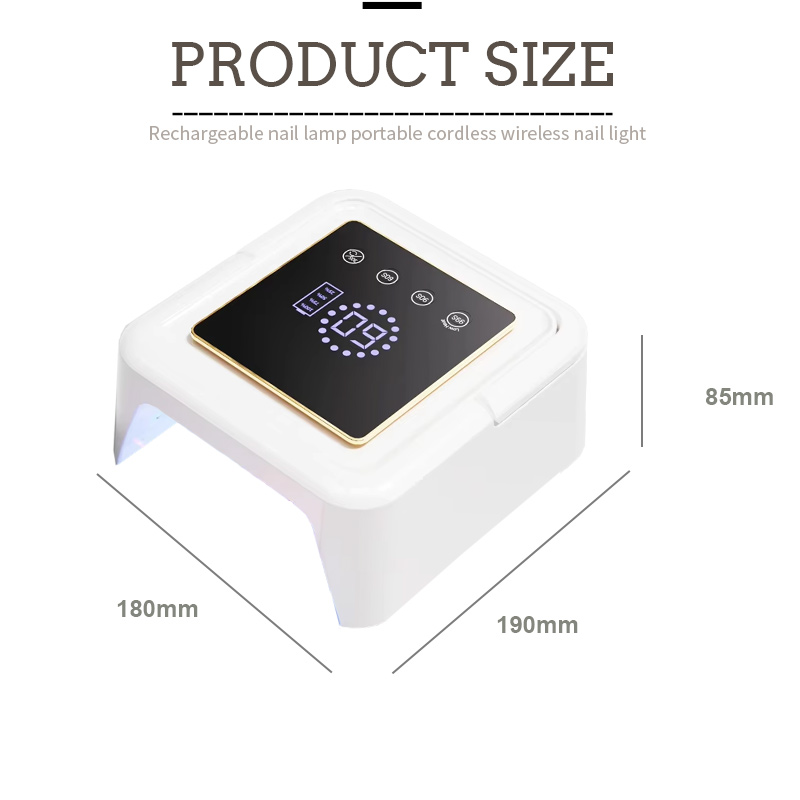 Եղունգների չորացման քառակուսի լամպի չափսերն են՝ 180 մմ երկարություն, 190 մմ լայնություն և 85 մմ բարձրություն, մեծ տարողությամբ և ձեռքերի և ոտքերի օգտագործման հնարավորությամբ, ինչը շատ հարմար է։