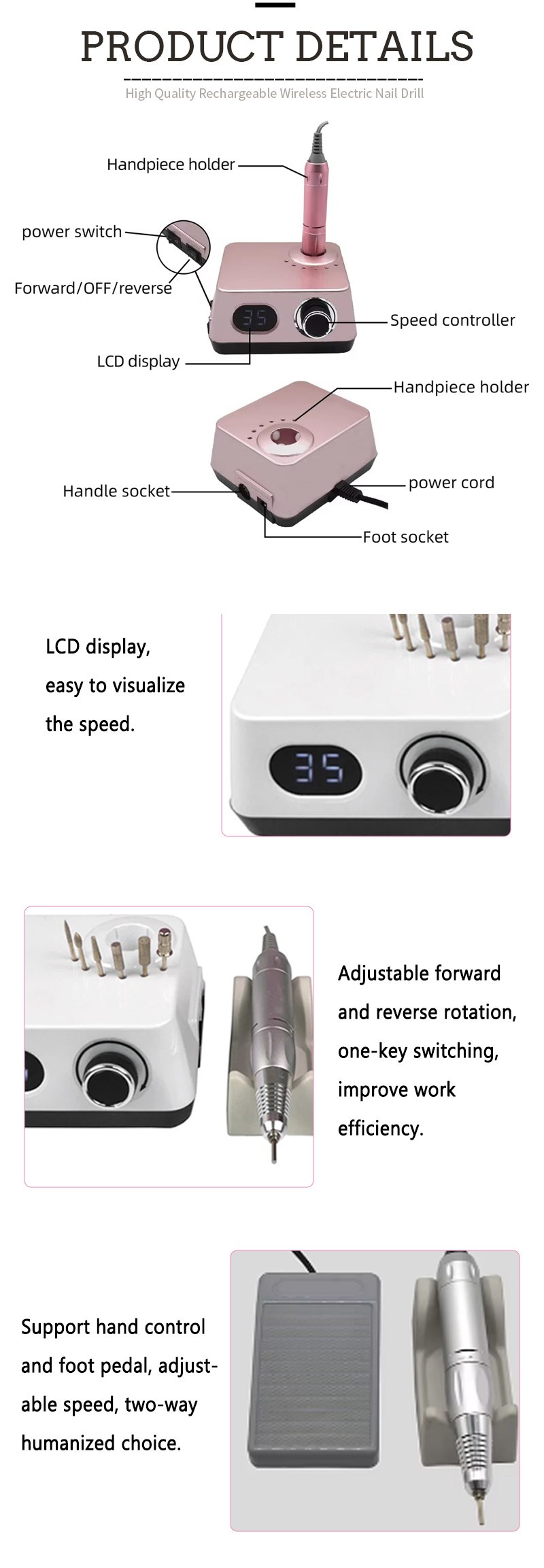 | Անլար էլեկտրական եղունգների գայլիկոն՝ 35,000 պտույտ/րոպե մանրամասներով |